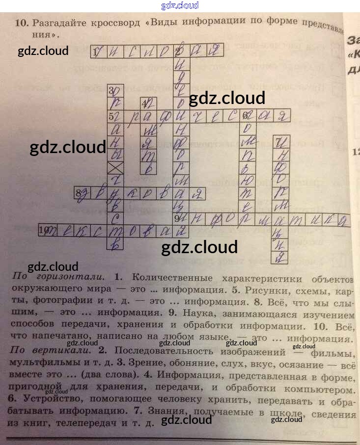 Ответ на задание 10 Рабочая тетрадь Информатика за 5 (пятый) класс Босова 2016 Часть 1, 2