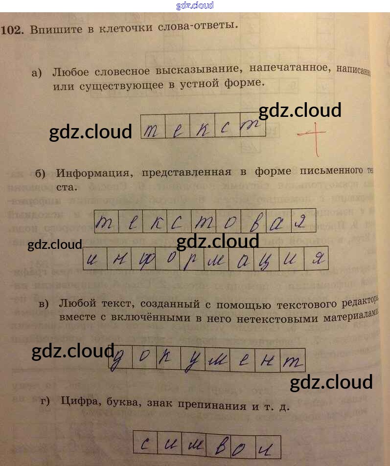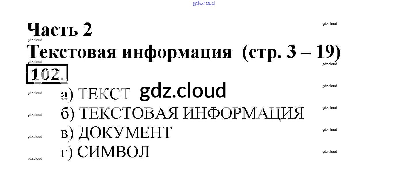 Ответ на задание 102 Рабочая тетрадь Информатика за 5 (пятый) класс Босова 2016 Часть 1, 2