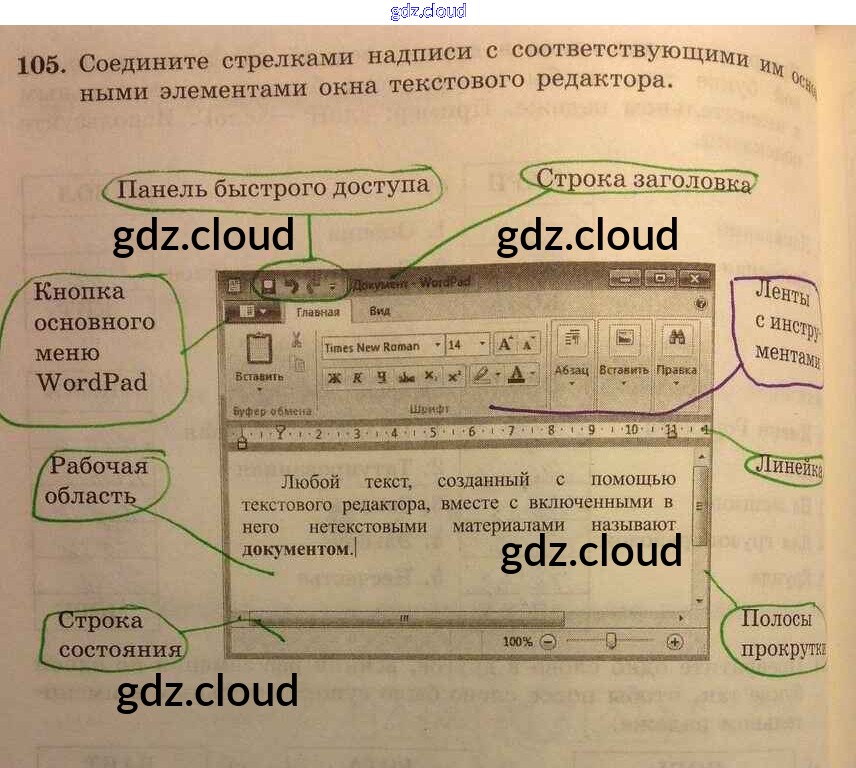 Ответ на задание 105 Рабочая тетрадь Информатика за 5 (пятый) класс Босова 2016 Часть 1, 2