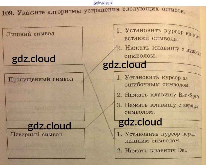 Ответ на задание 109 Рабочая тетрадь Информатика за 5 (пятый) класс Босова 2016 Часть 1, 2