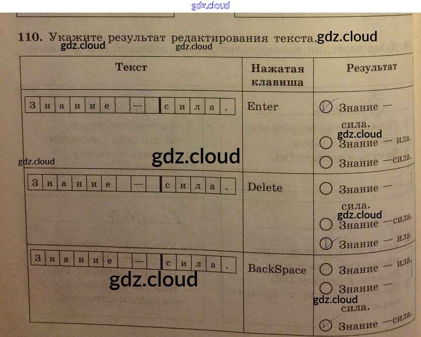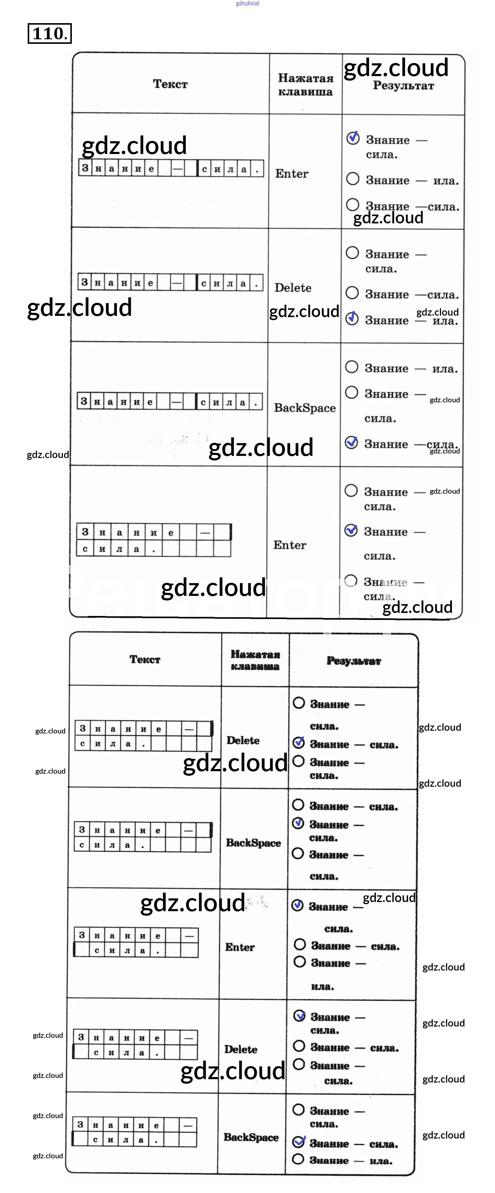 Ответ на задание 110 Рабочая тетрадь Информатика за 5 (пятый) класс Босова 2016 Часть 1, 2