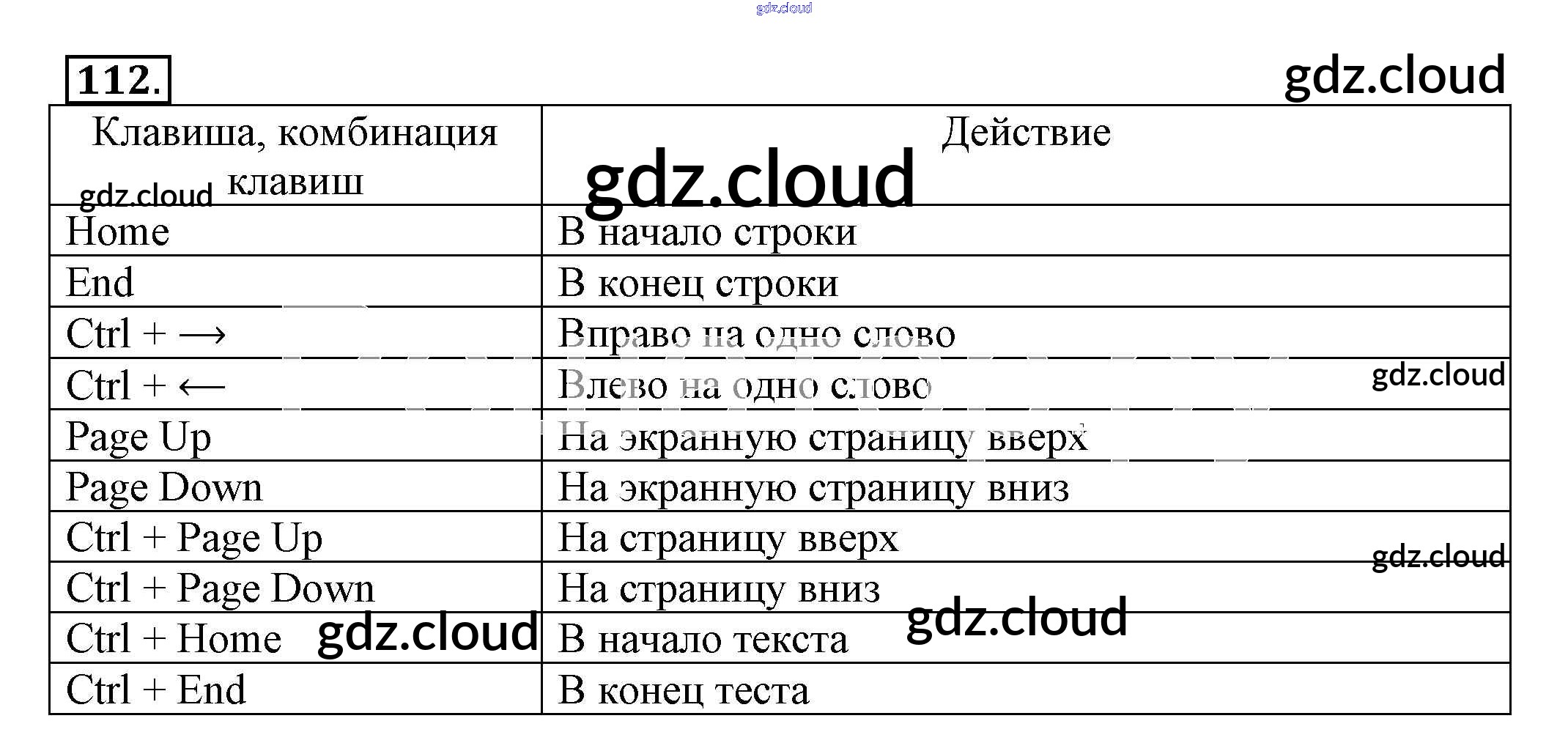 Ответ на задание 112 Рабочая тетрадь Информатика за 5 (пятый) класс Босова 2016 Часть 1, 2