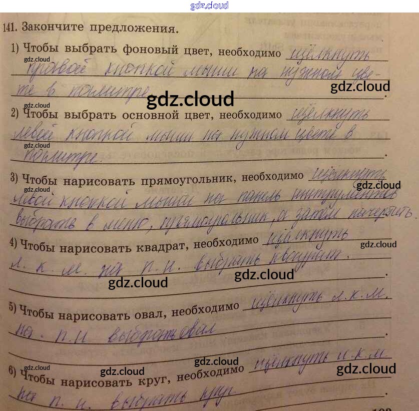 Ответ на задание 141 Рабочая тетрадь Информатика за 5 (пятый) класс Босова 2016 Часть 1, 2