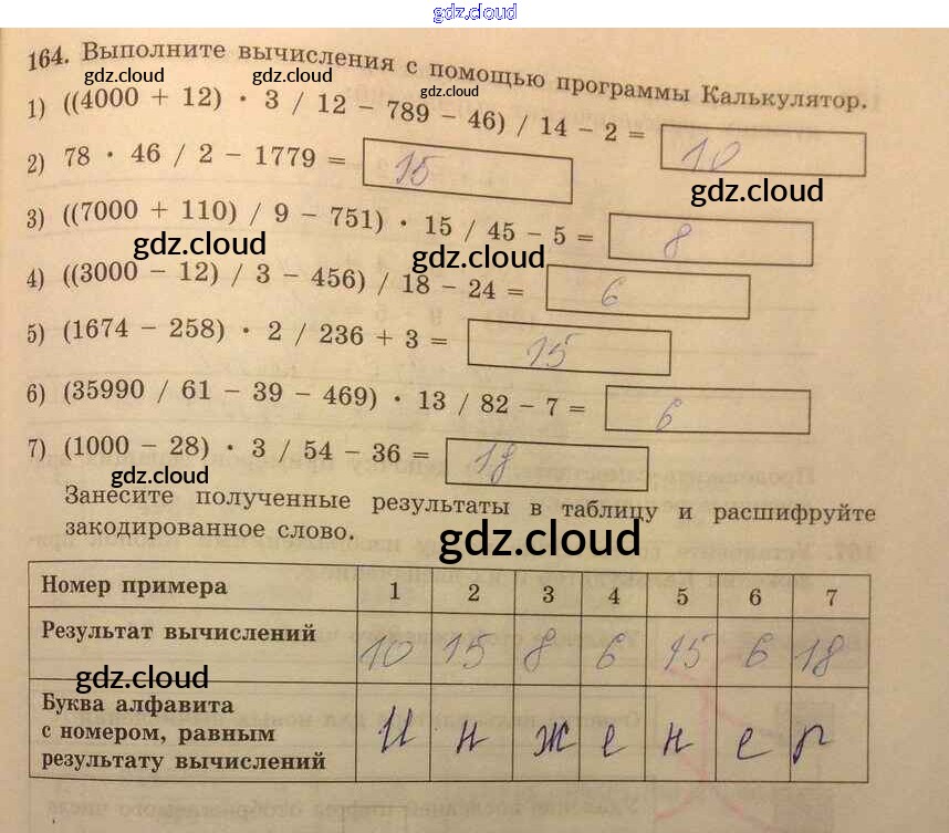 Ответ на задание 164 Рабочая тетрадь Информатика за 5 (пятый) класс Босова 2016 Часть 1, 2