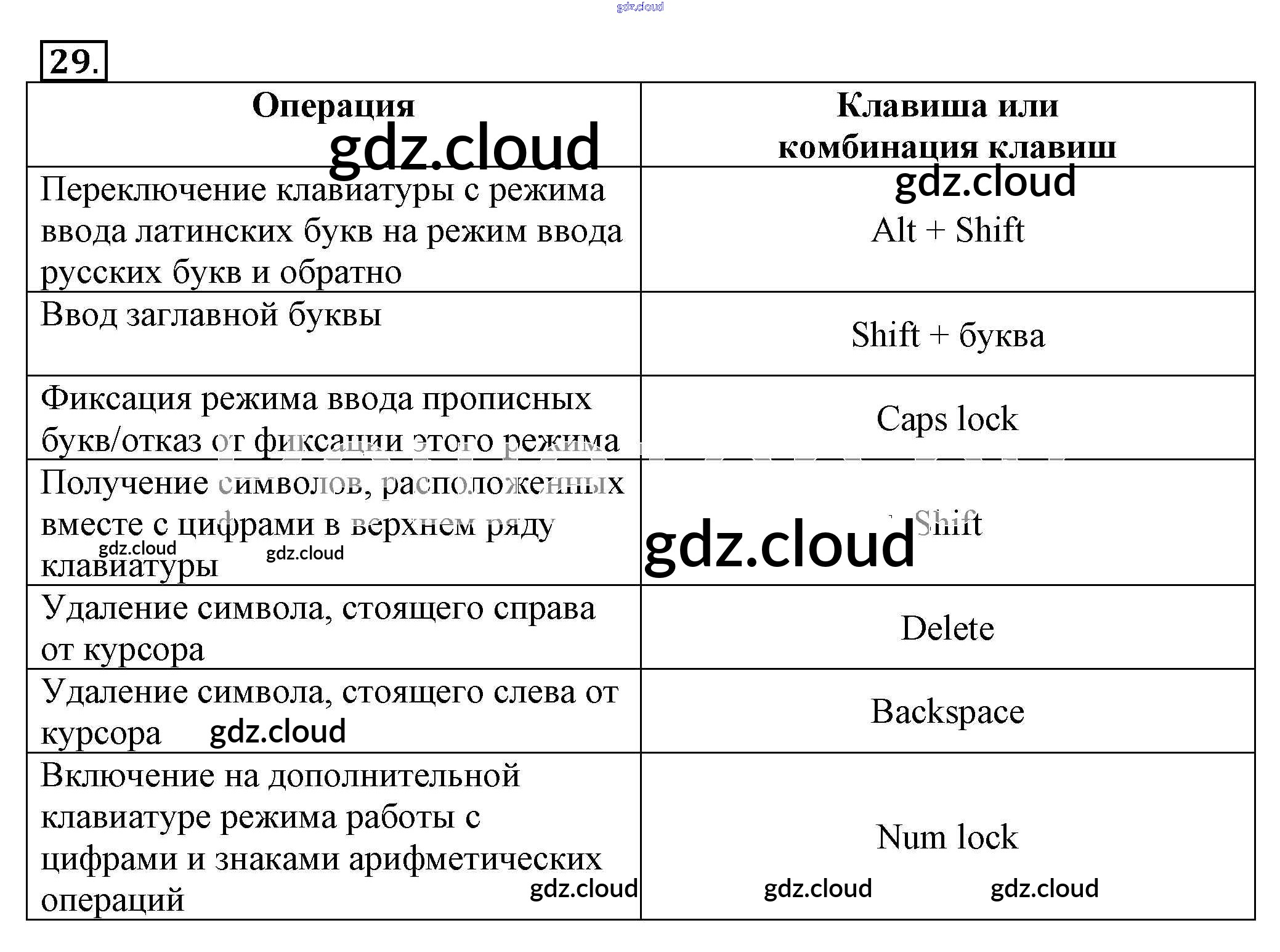 Ответ на задание 29 Рабочая тетрадь Информатика за 5 (пятый) класс Босова 2016 Часть 1, 2