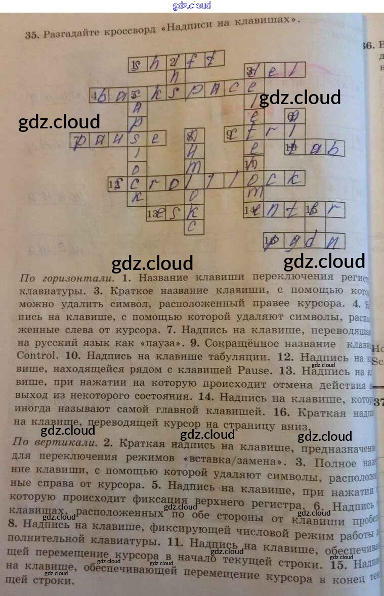 Ответ на задание 35 Рабочая тетрадь Информатика за 5 (пятый) класс Босова 2016 Часть 1, 2