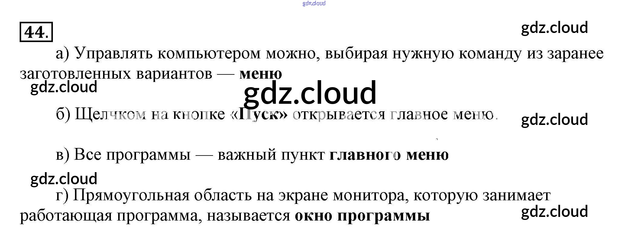Ответ на задание 44 Рабочая тетрадь Информатика за 5 (пятый) класс Босова 2016 Часть 1, 2