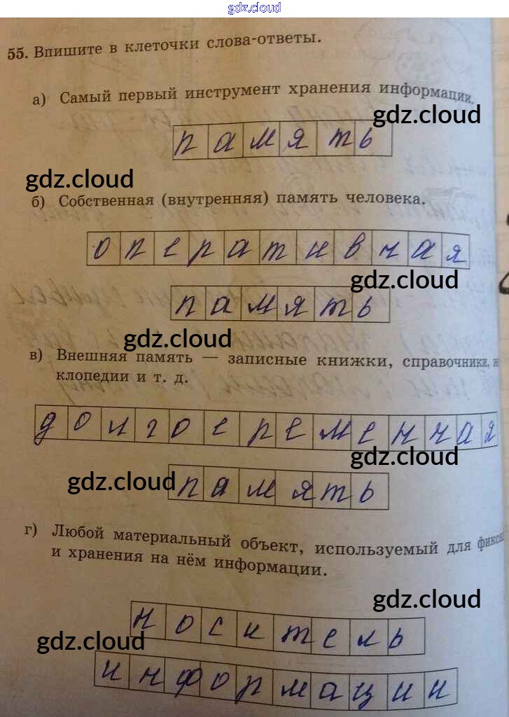 Ответ на задание 55 Рабочая тетрадь Информатика за 5 (пятый) класс Босова 2016 Часть 1, 2