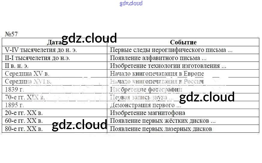 Ответ на задание 57 Рабочая тетрадь Информатика за 5 (пятый) класс Босова 2016 Часть 1, 2