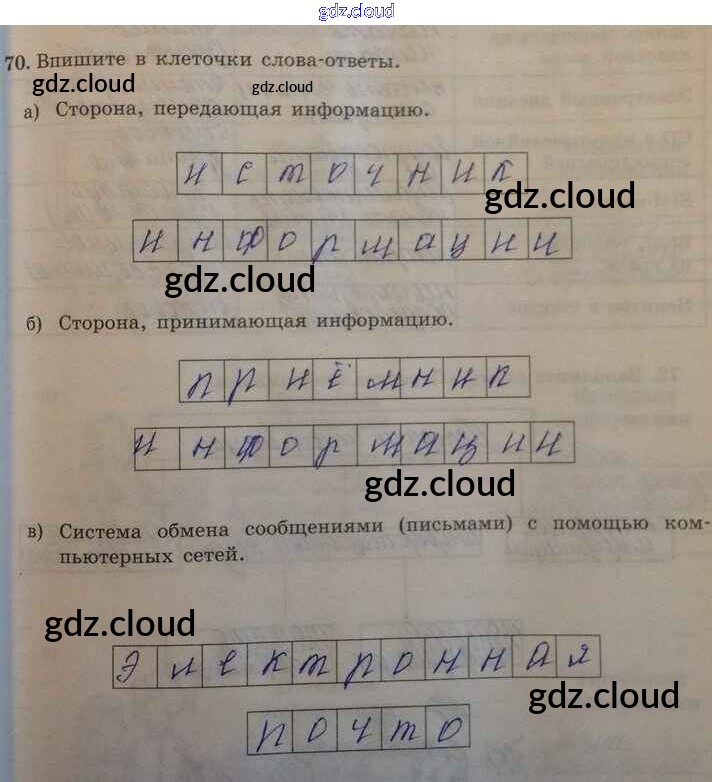 Ответ на задание 70 Рабочая тетрадь Информатика за 5 (пятый) класс Босова 2016 Часть 1, 2