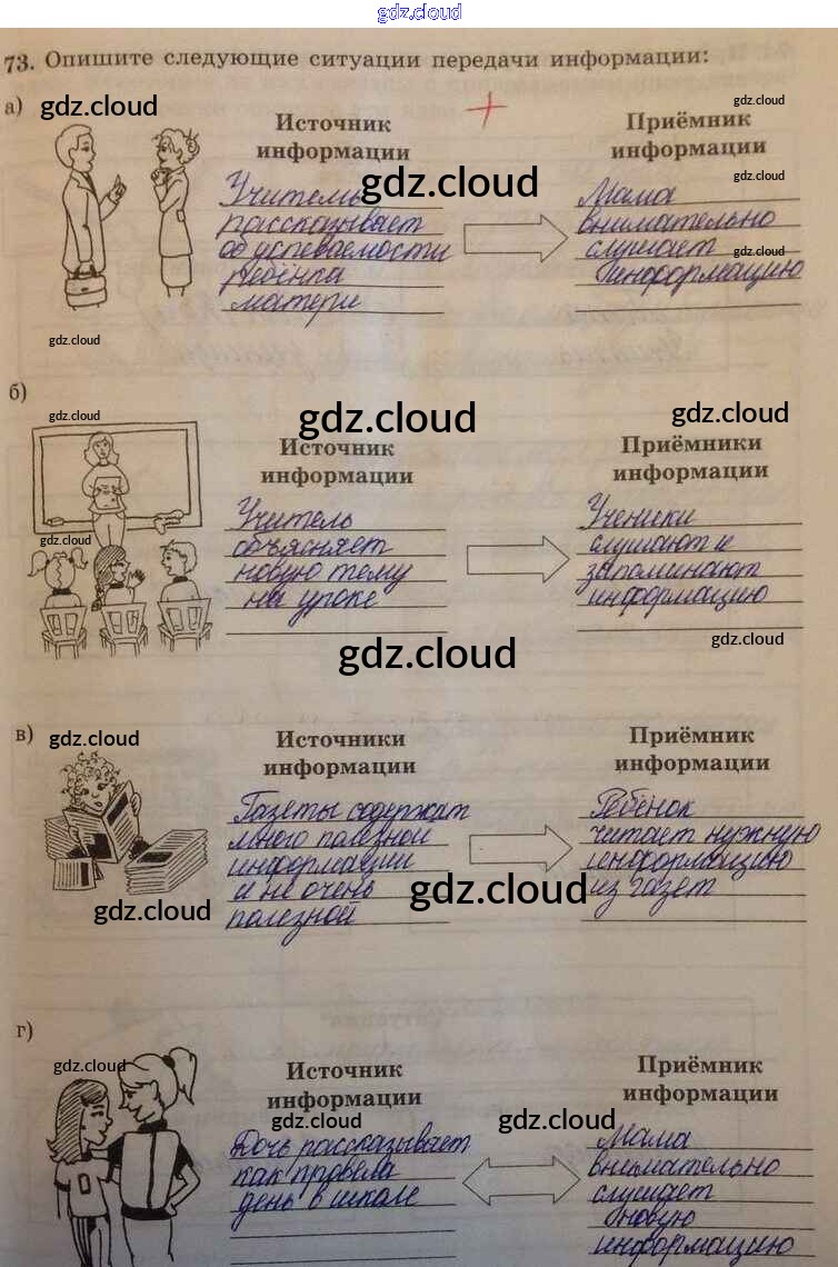Ответ на задание 73 Рабочая тетрадь Информатика за 5 (пятый) класс Босова 2016 Часть 1, 2