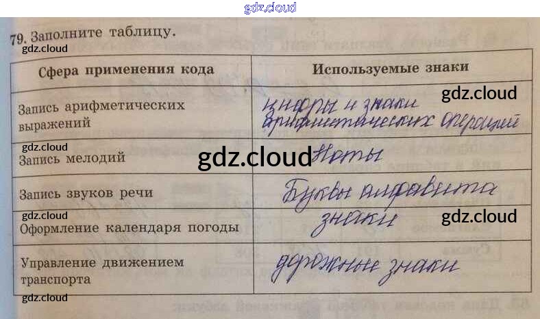 Ответ на задание 79 Рабочая тетрадь Информатика за 5 (пятый) класс Босова 2016 Часть 1, 2