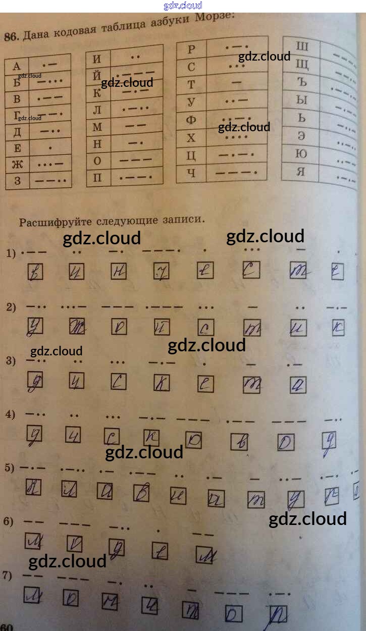 Ответ на задание 86 Рабочая тетрадь Информатика за 5 (пятый) класс Босова 2016 Часть 1, 2