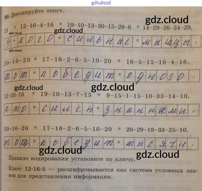 Ответ на задание 90 Рабочая тетрадь Информатика за 5 (пятый) класс Босова 2016 Часть 1, 2