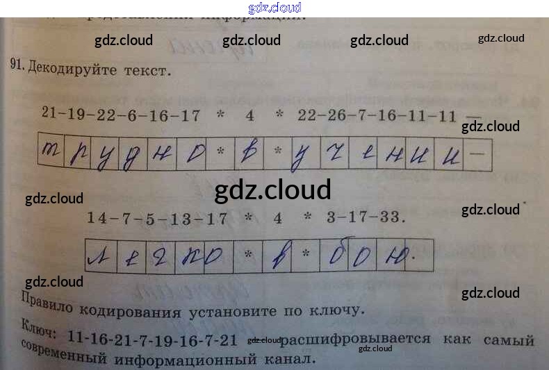 Ответ на задание 91 Рабочая тетрадь Информатика за 5 (пятый) класс Босова 2016 Часть 1, 2