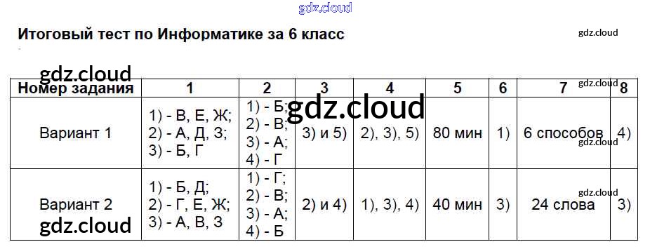 Ответы к Тестам по Информатике 6 класс Контрольно-измерительные материалы (КИМ) Масленикова ВАКО