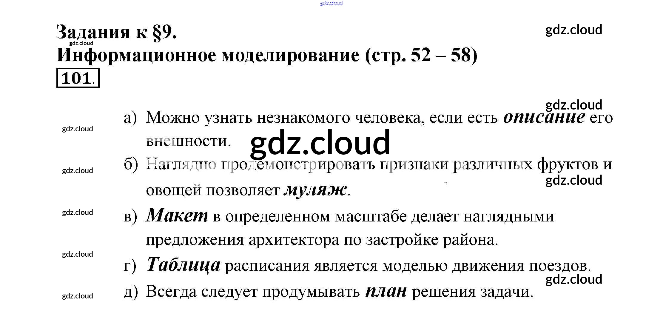 Ответ на задание 101 Рабочая тетрадь Информатика за 6 (шестой) класс Босова 2017 Часть 1, 2