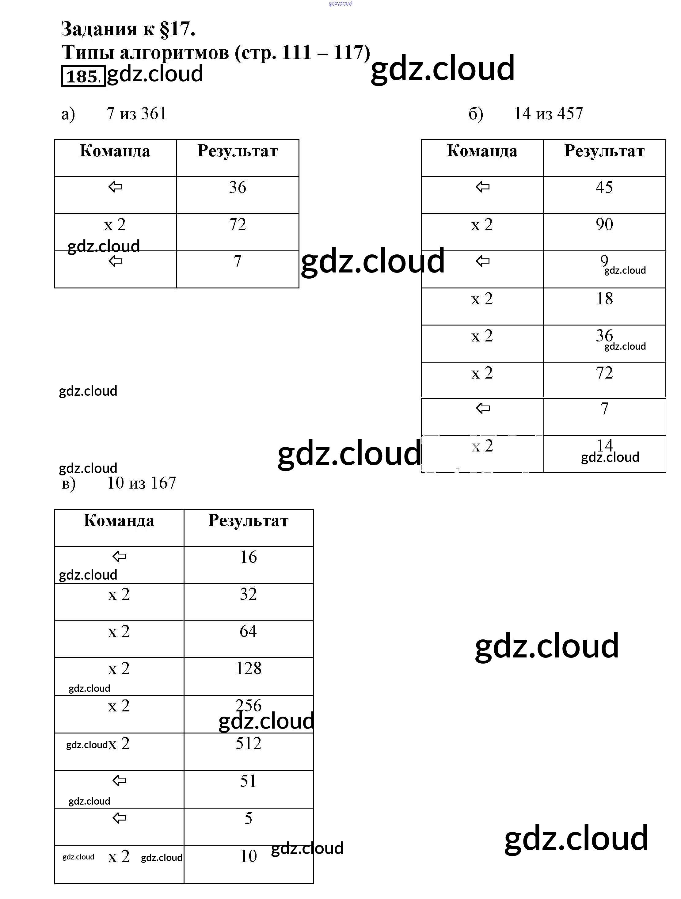 Ответ на задание 185 Рабочая тетрадь Информатика за 6 (шестой) класс Босова 2017 Часть 1, 2