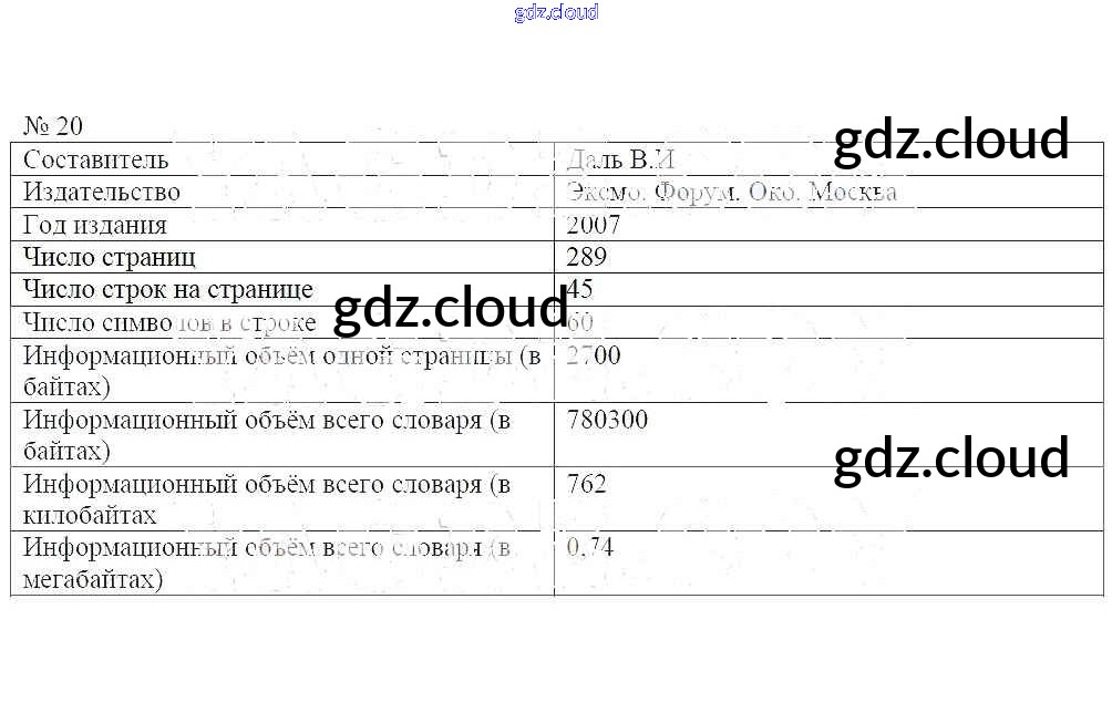 Ответ на задание 20 Рабочая тетрадь Информатика за 6 (шестой) класс Босова 2017 Часть 1, 2