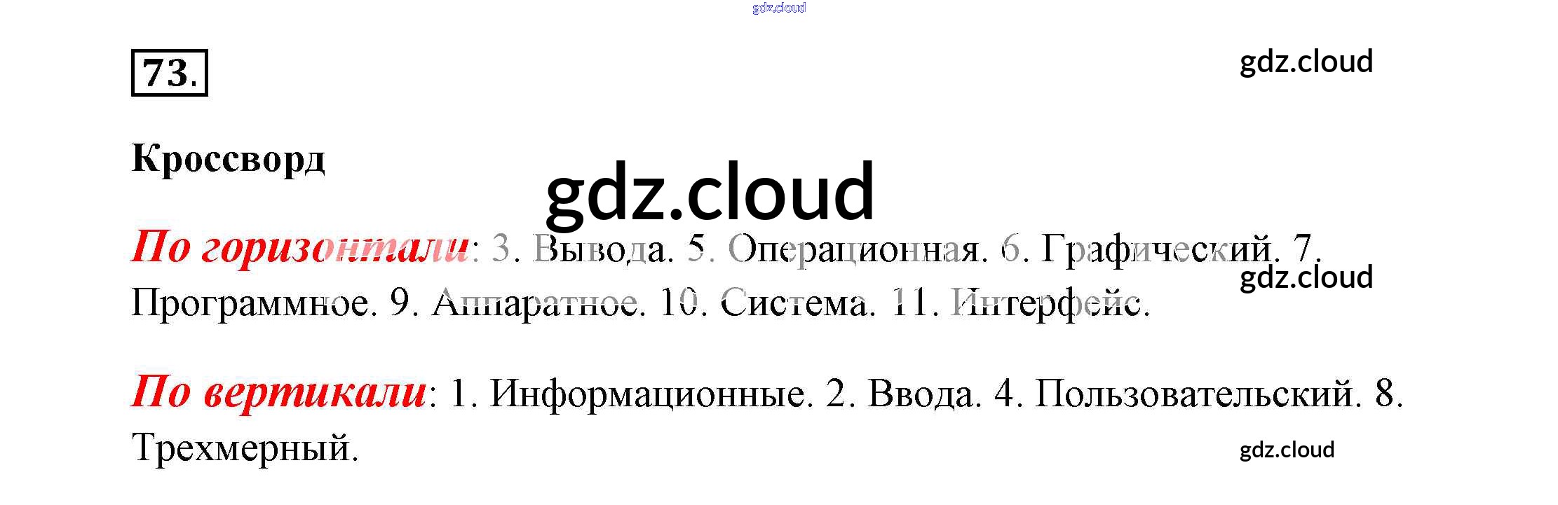 Ответ на задание 73 Рабочая тетрадь Информатика за 6 (шестой) класс Босова 2017 Часть 1, 2