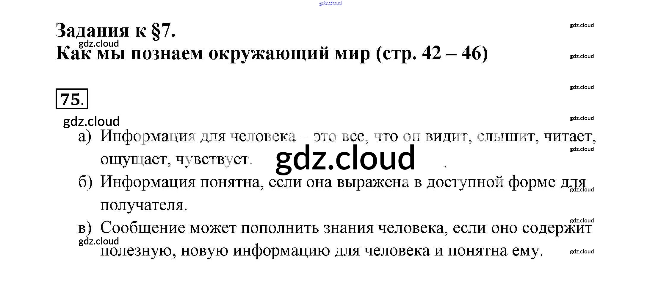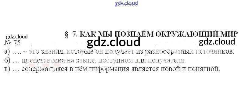 Ответ на задание 75 Рабочая тетрадь Информатика за 6 (шестой) класс Босова 2017 Часть 1, 2