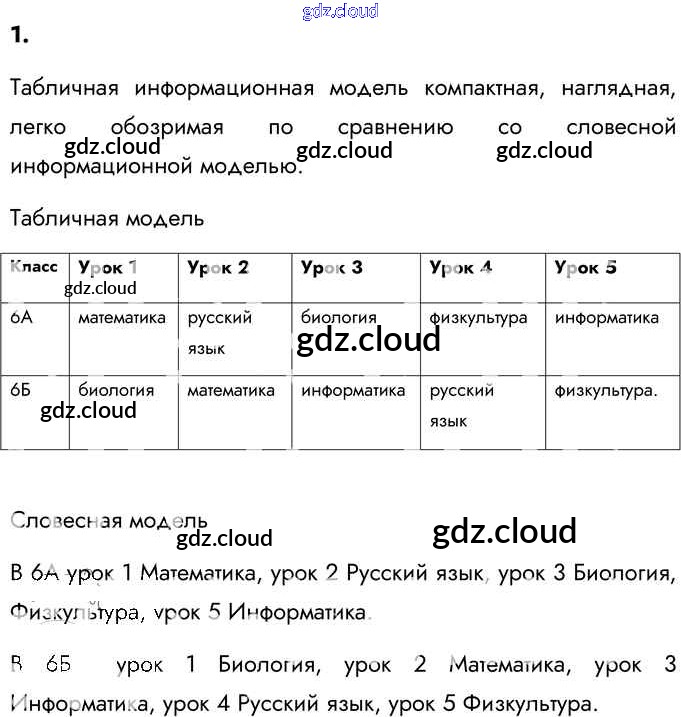 Ответ на задание 1 Учебник Информатика за 6 (шестой) класс Босова, Босова 2016 ФГОС онлайн и без номера телефона.