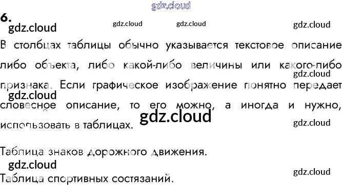 Ответ на задание 6 Учебник Информатика за 6 (шестой) класс Босова, Босова 2016 ФГОС онлайн и без номера телефона.