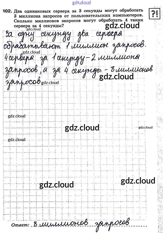 Ответ на задание 102 Рабочая тетрадь Информатика за 7 (седьмой) класс Босова 2018