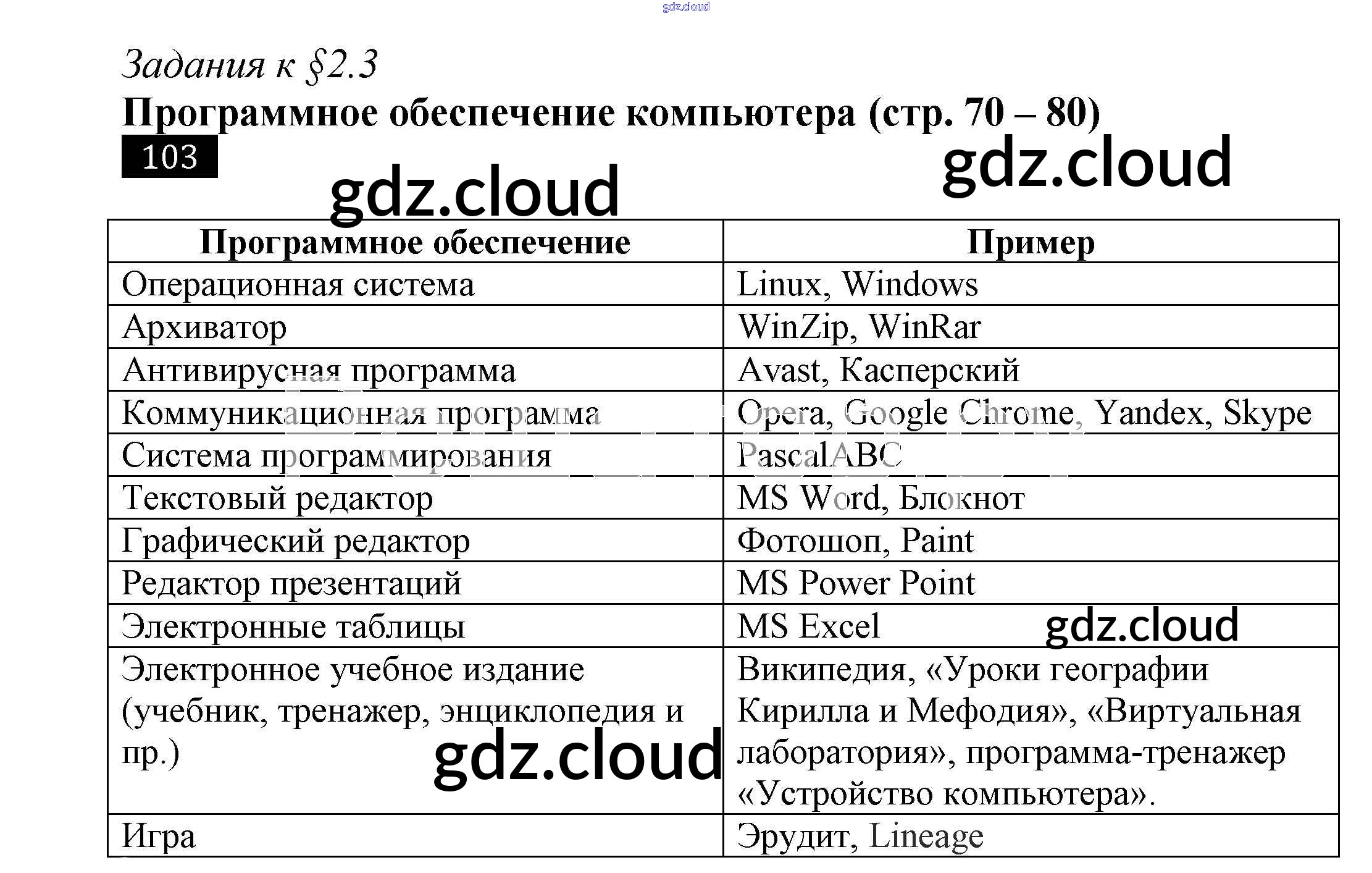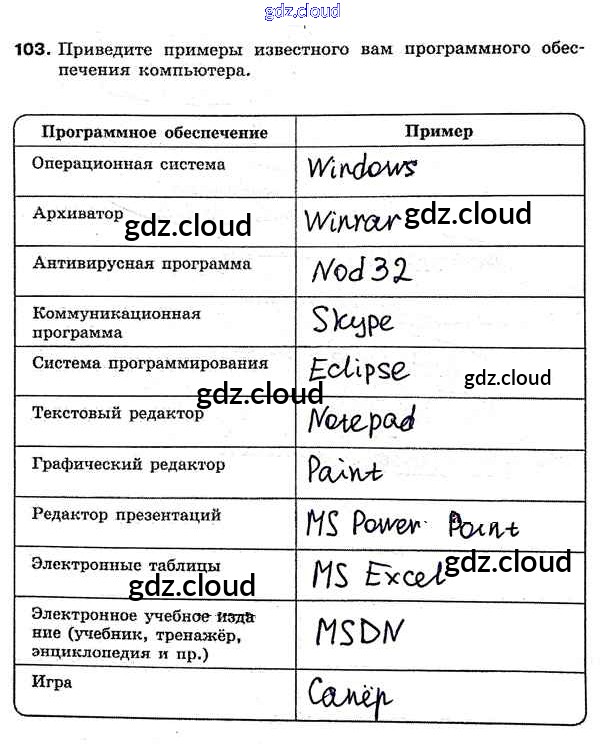 Ответ на задание 103 Рабочая тетрадь Информатика за 7 (седьмой) класс Босова 2018