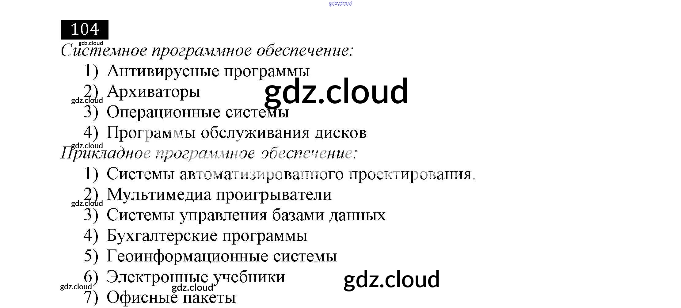 Ответ на задание 104 Рабочая тетрадь Информатика за 7 (седьмой) класс Босова 2018