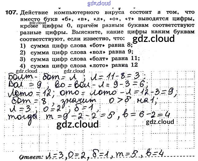 Ответ на задание 107 Рабочая тетрадь Информатика за 7 (седьмой) класс Босова 2018