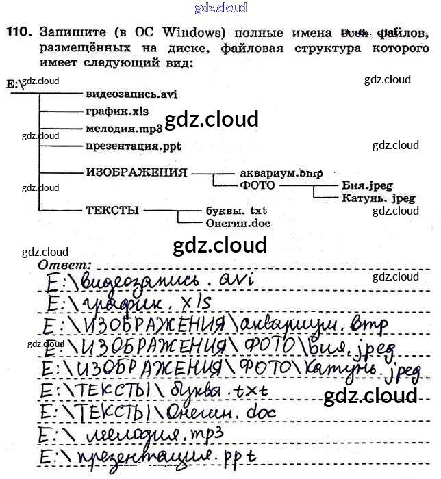 Ответ на задание 110 Рабочая тетрадь Информатика за 7 (седьмой) класс Босова 2018