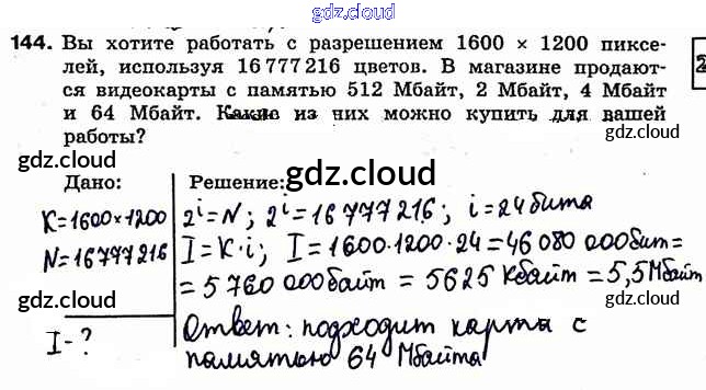 Ответ на задание 144 Рабочая тетрадь Информатика за 7 (седьмой) класс Босова 2018