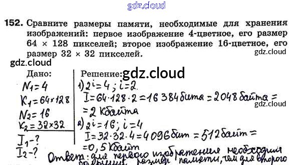 Ответ на задание 152 Рабочая тетрадь Информатика за 7 (седьмой) класс Босова 2018