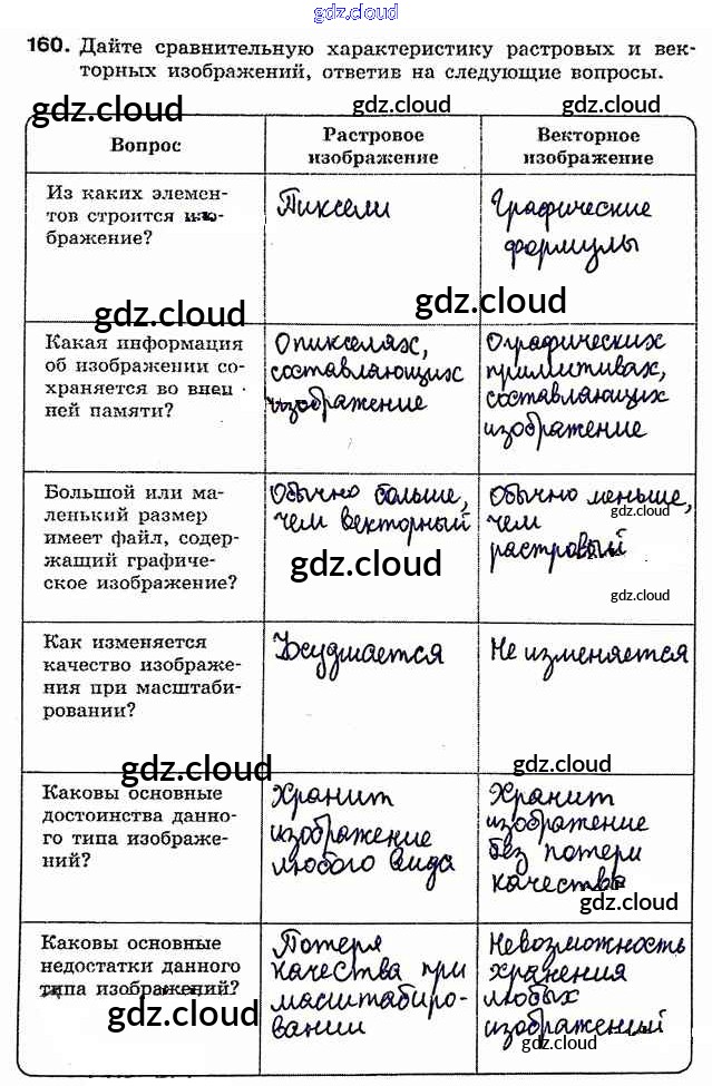 Ответ на задание 160 Рабочая тетрадь Информатика за 7 (седьмой) класс Босова 2018