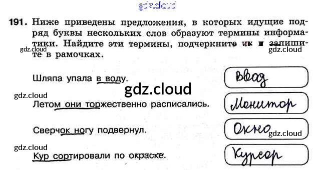 Ответ на задание 191 Рабочая тетрадь Информатика за 7 (седьмой) класс Босова 2018