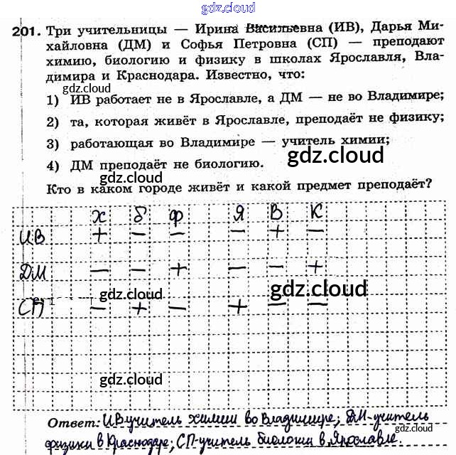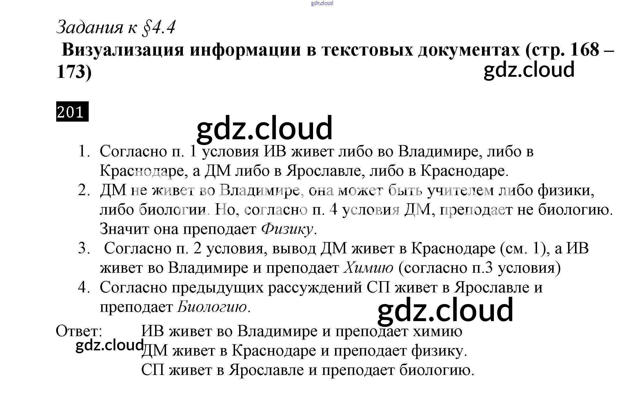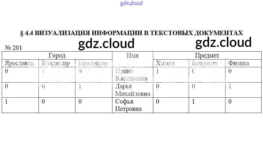 Ответ на задание 201 Рабочая тетрадь Информатика за 7 (седьмой) класс Босова 2018