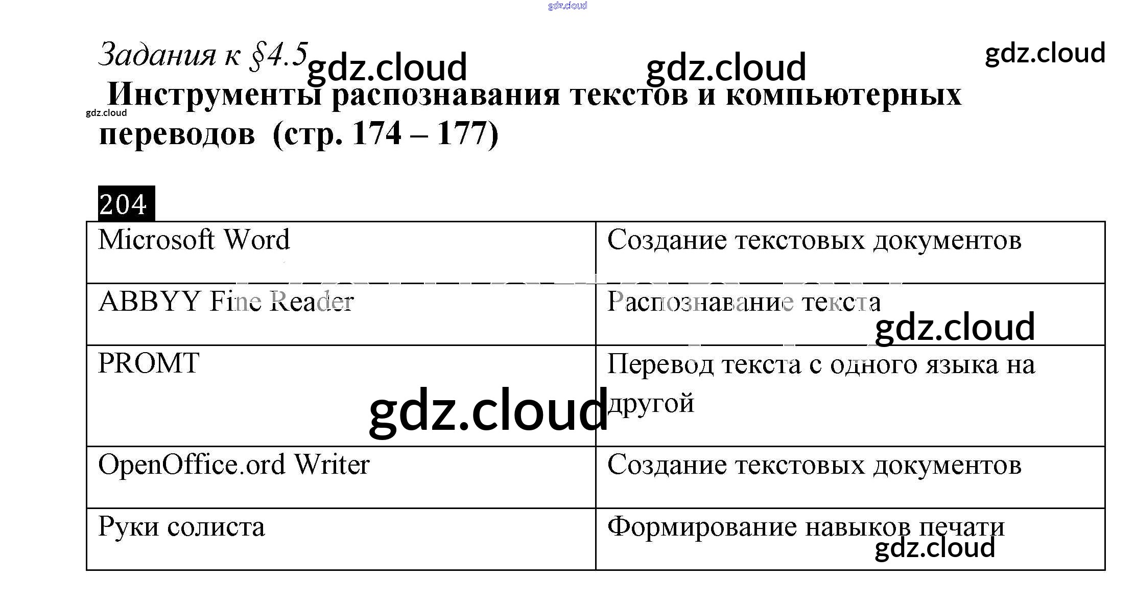 Ответ на задание 204 Рабочая тетрадь Информатика за 7 (седьмой) класс Босова 2018