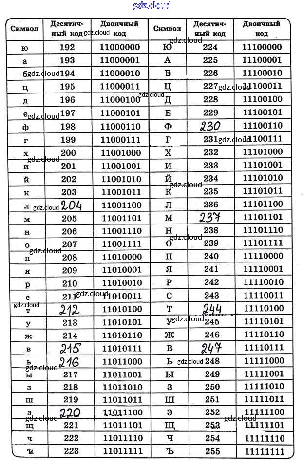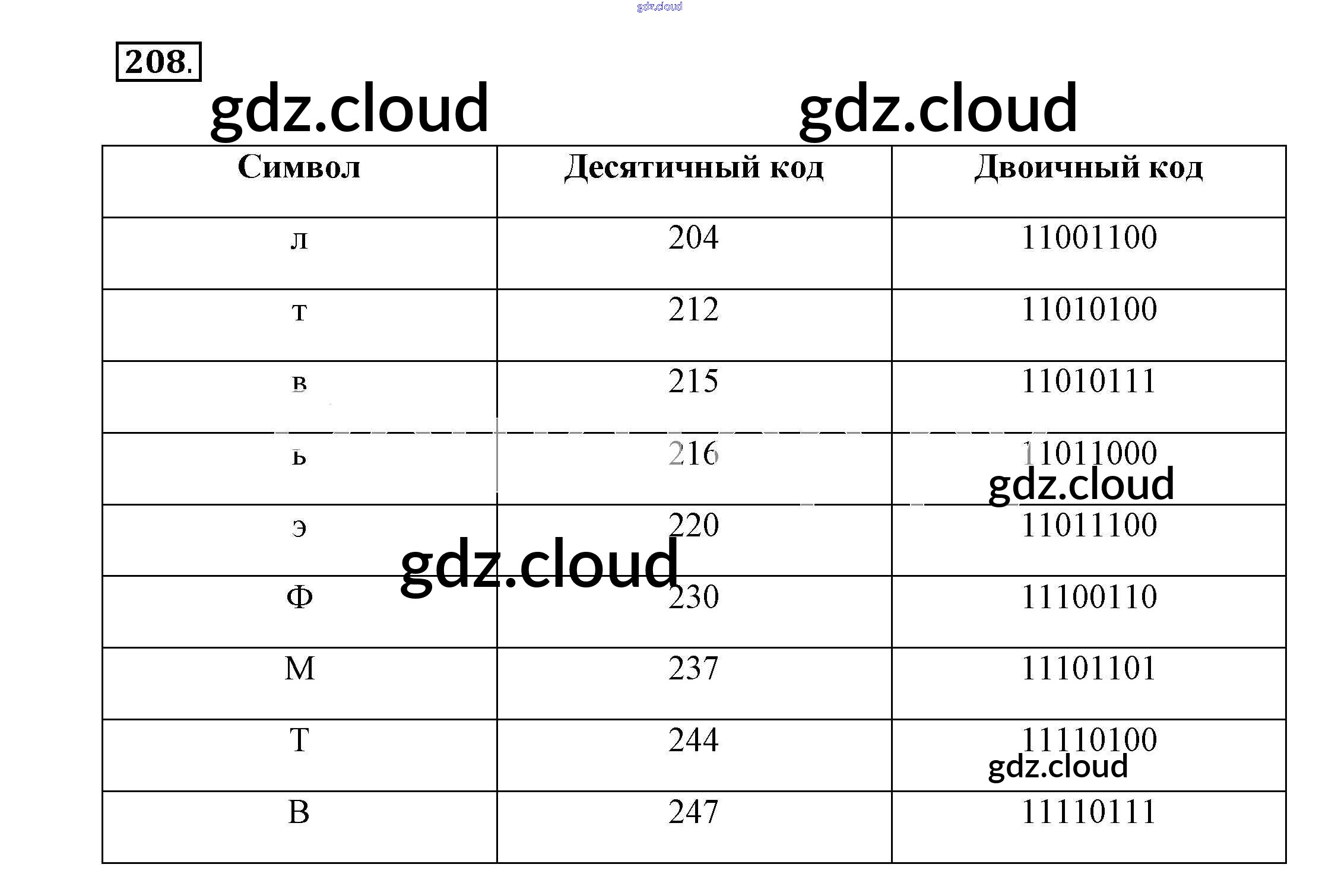 Ответ на задание 208 Рабочая тетрадь Информатика за 7 (седьмой) класс Босова 2018