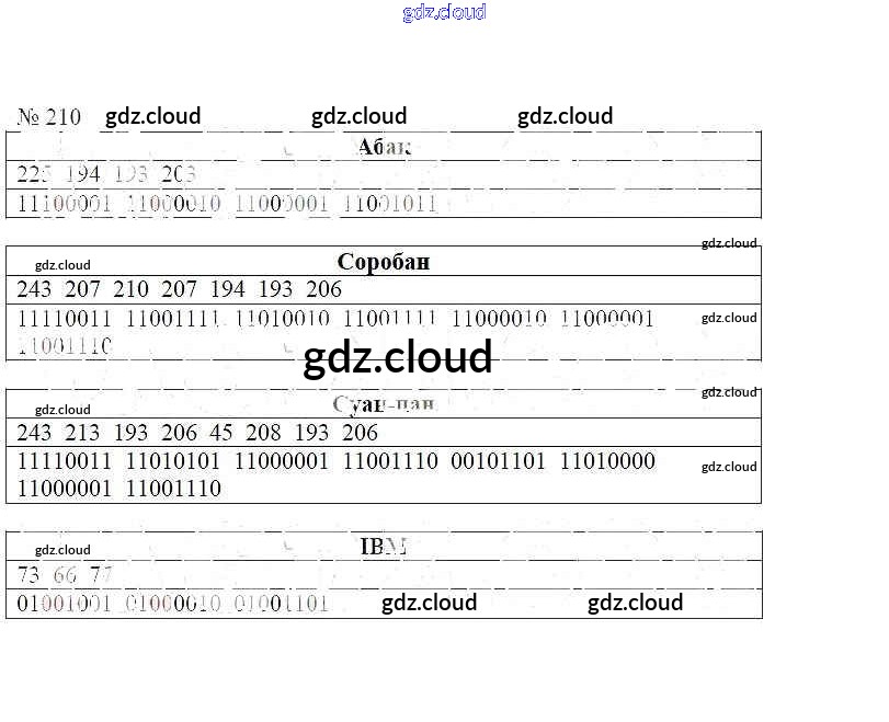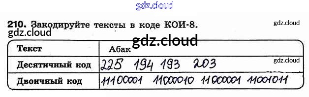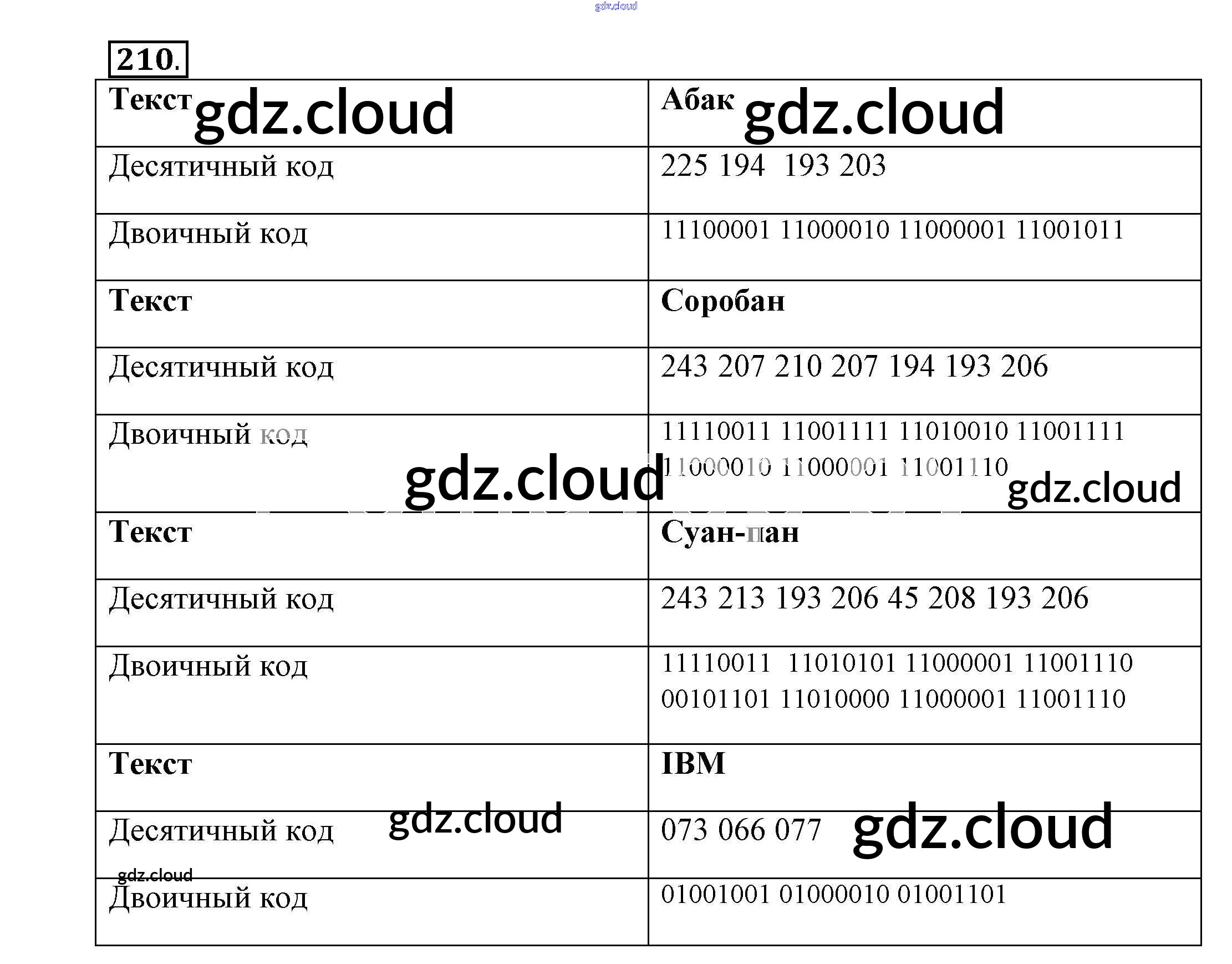 Ответ на задание 210 Рабочая тетрадь Информатика за 7 (седьмой) класс Босова 2018