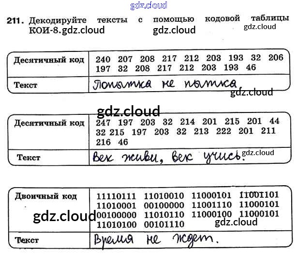 Ответ на задание 211 Рабочая тетрадь Информатика за 7 (седьмой) класс Босова 2018