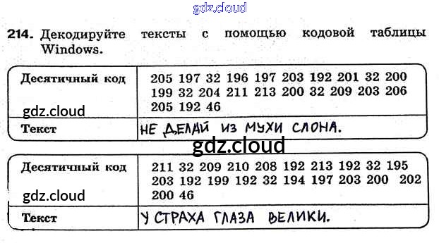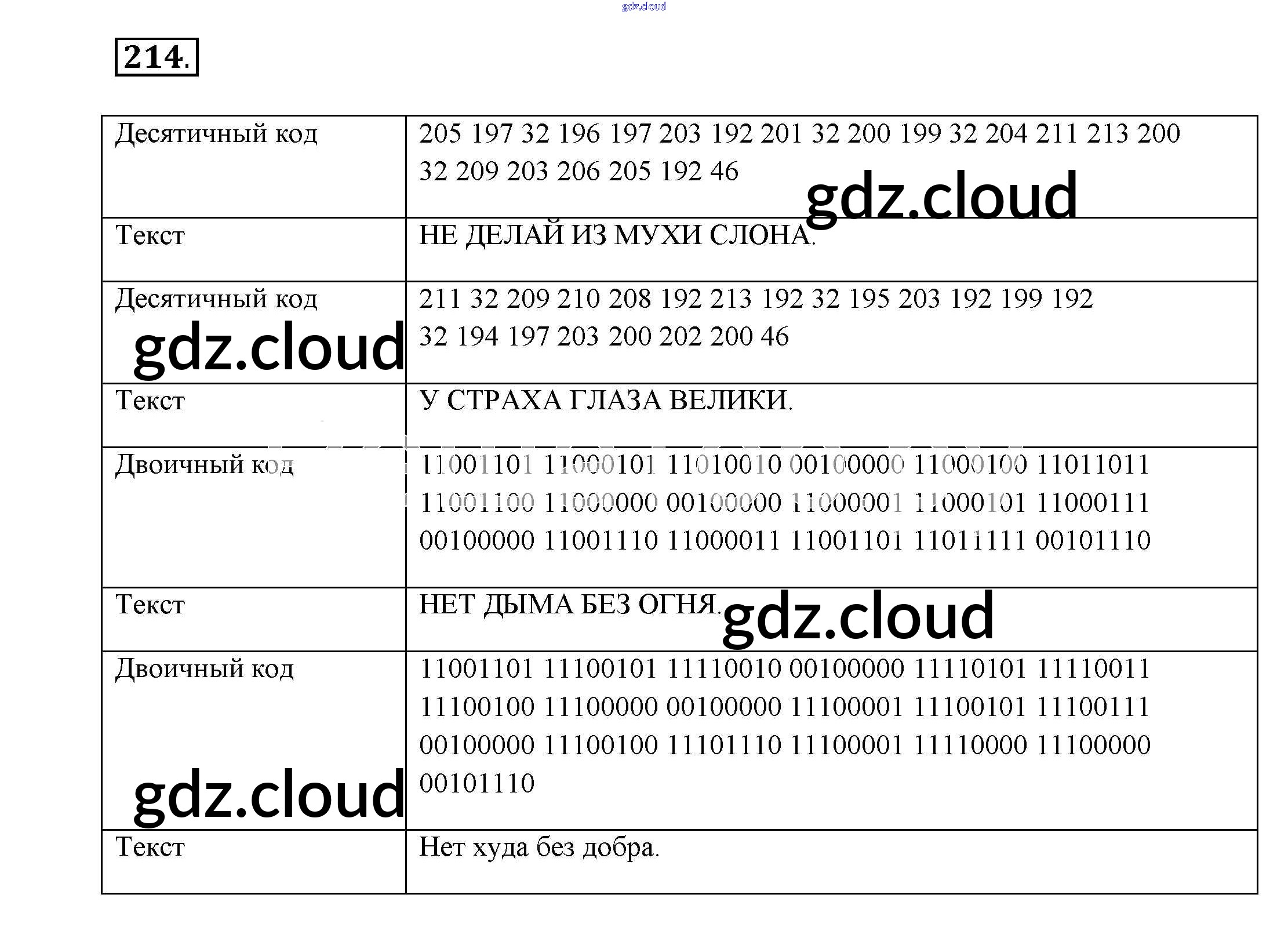 Ответ на задание 214 Рабочая тетрадь Информатика за 7 (седьмой) класс Босова 2018