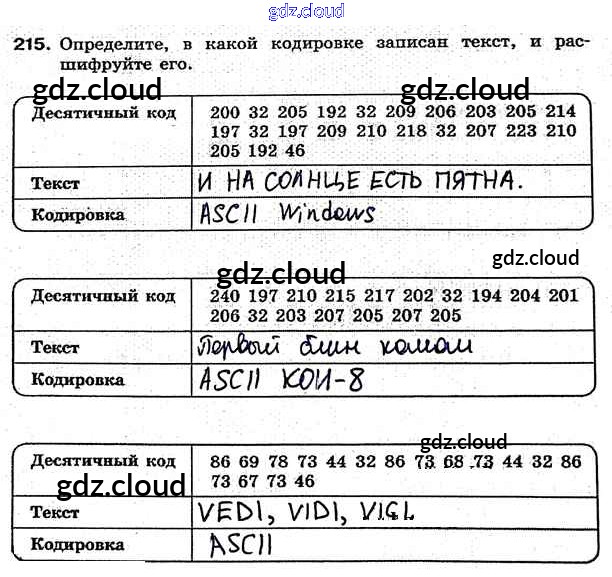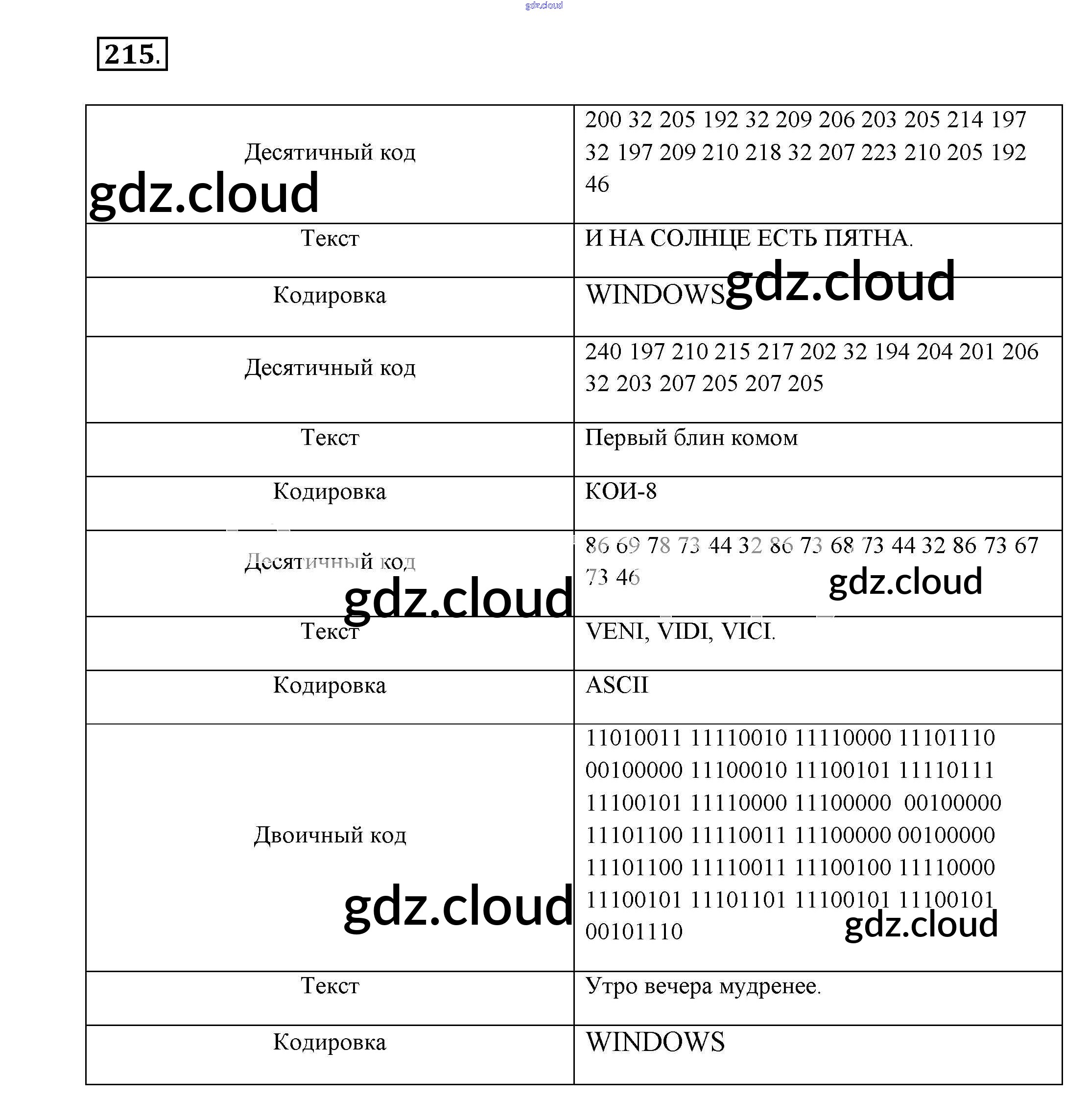 Ответ на задание 215 Рабочая тетрадь Информатика за 7 (седьмой) класс Босова 2018