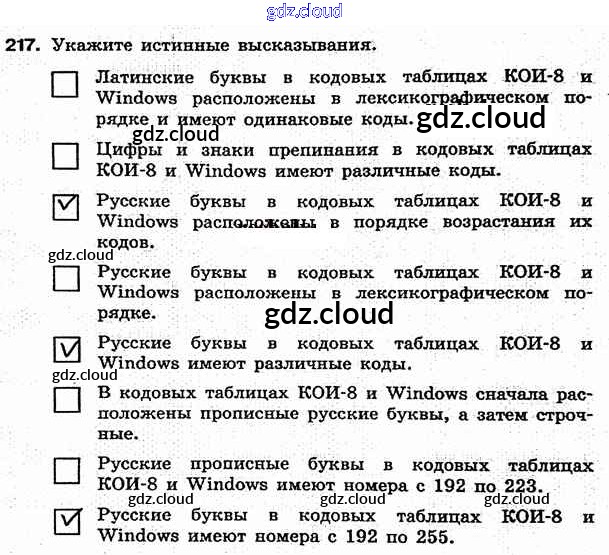 Ответ на задание 217 Рабочая тетрадь Информатика за 7 (седьмой) класс Босова 2018
