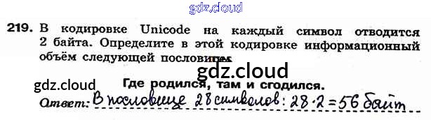 Ответ на задание 219 Рабочая тетрадь Информатика за 7 (седьмой) класс Босова 2018