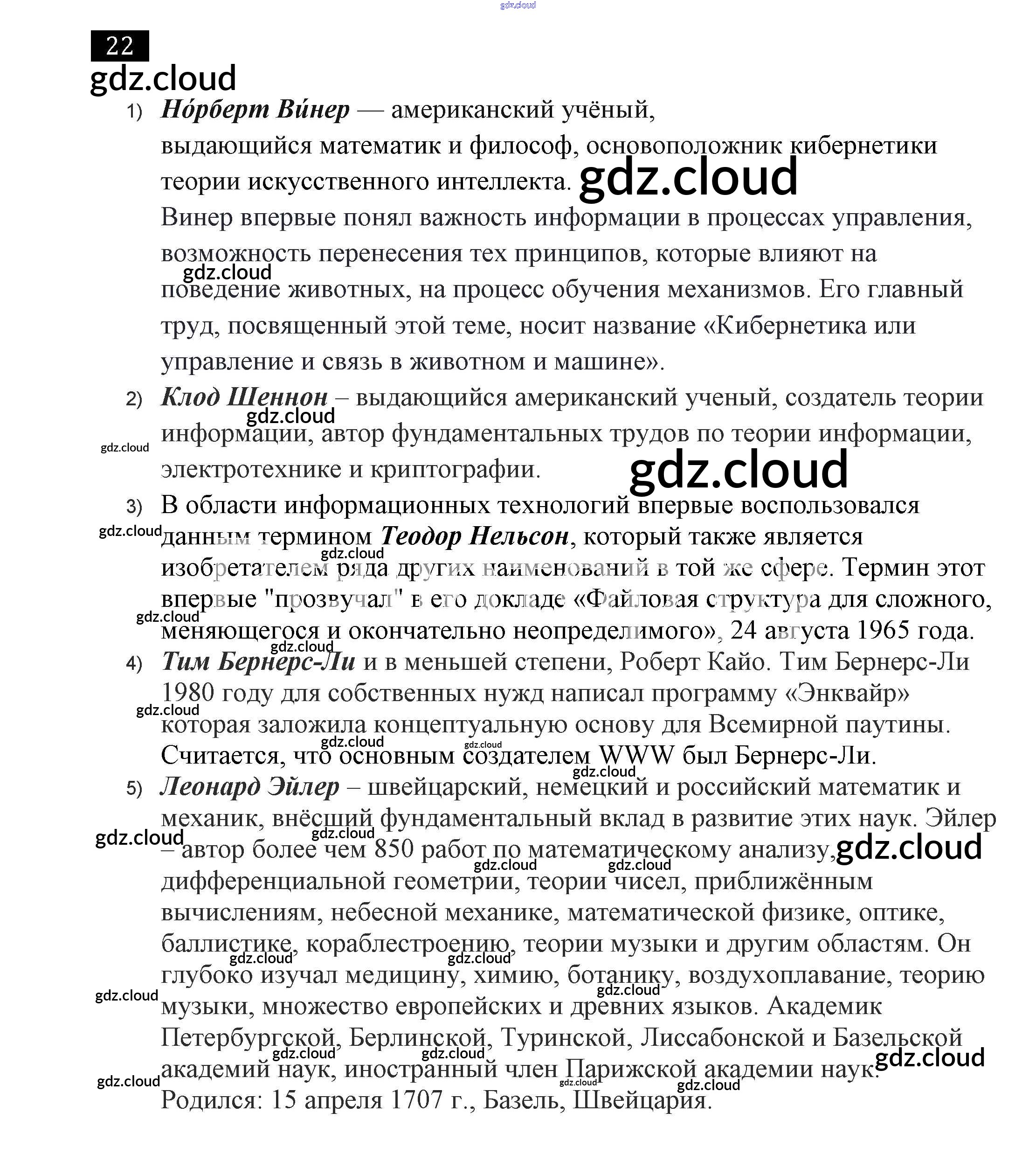 Ответ на задание 22 Рабочая тетрадь Информатика за 7 (седьмой) класс Босова 2018 ФГОС онлайн и без номера телефона.