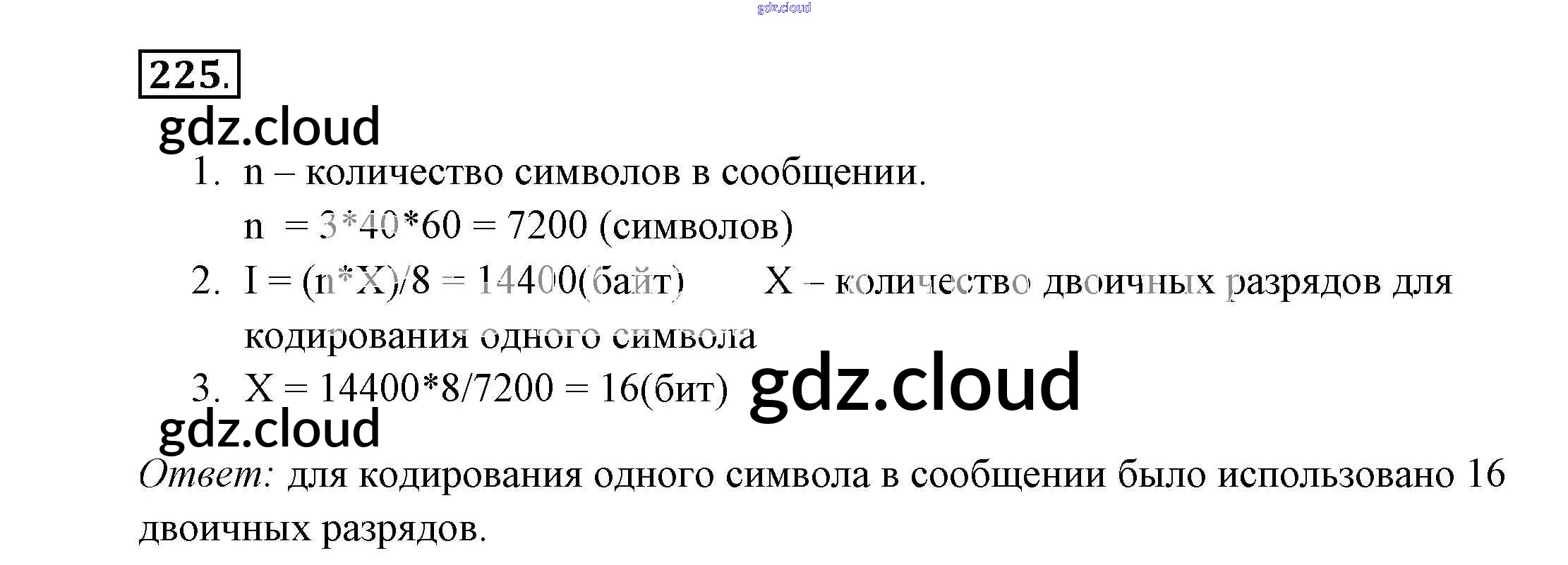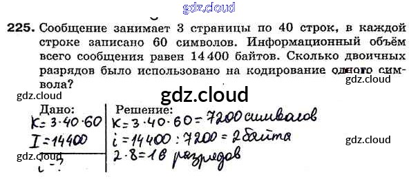 Ответ на задание 225 Рабочая тетрадь Информатика за 7 (седьмой) класс Босова 2018