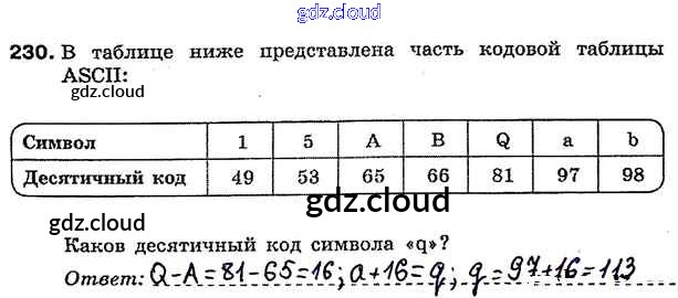 Ответ на задание 230 Рабочая тетрадь Информатика за 7 (седьмой) класс Босова 2018
