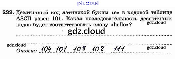 Ответ на задание 232 Рабочая тетрадь Информатика за 7 (седьмой) класс Босова 2018