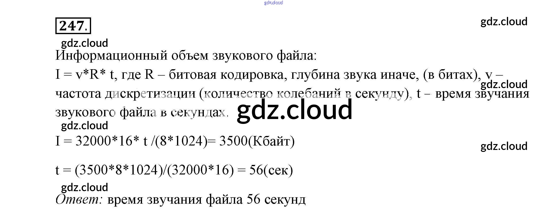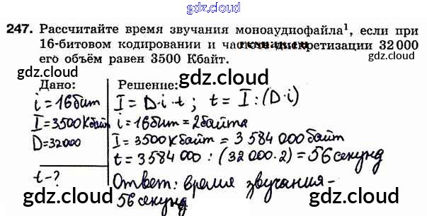 Ответ на задание 247 Рабочая тетрадь Информатика за 7 (седьмой) класс Босова 2018